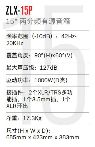 • LCD顯示屏和帶有預(yù)設(shè)功能的DSP控制旋鈕,快速優(yōu)化ZLX音箱系列,滿足各種演出類型和空間